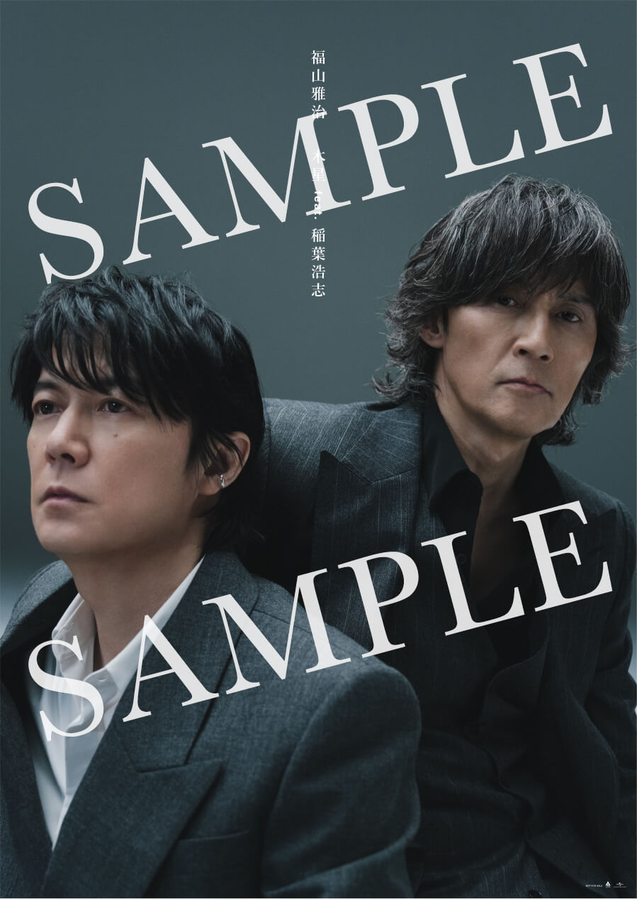 予約購入キャンペーンでは、熱狂のビッグプロジェクトにちなんで、稲葉さんと福山さんお二人のヴィジュアルを、可能な限り大きな形でお手に取っていただきたいという想いを込めて「B2ポスター」、「メガジャケ」を特典としてご用意!